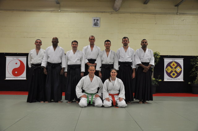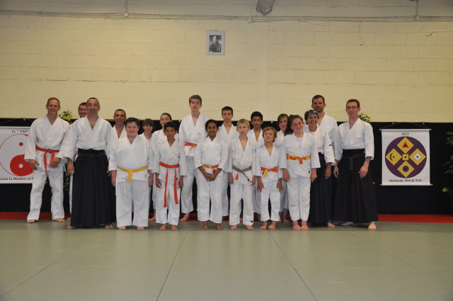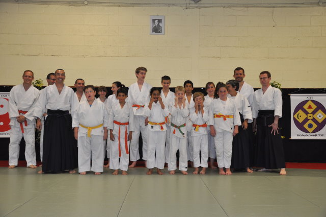 Les Kyus promus, accompagnés de quelques Ceintures Noires à liserés violets.